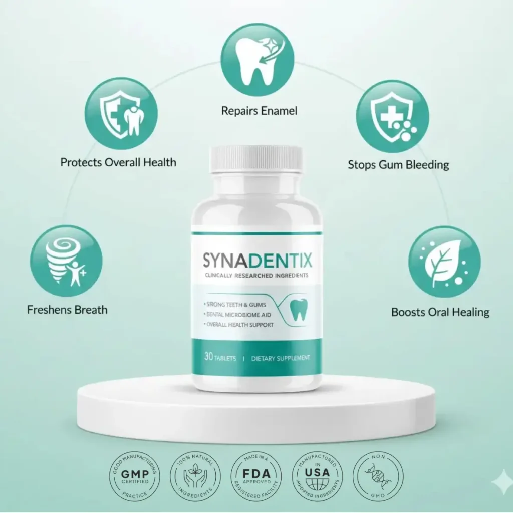 Synadentix is an advanced oral-health supplement created in 2025 to strengthen enamel, support gum health, and balance the oral microbiome. Backed by modern research, it promotes enamel remineralization, reduces gum inflammation, and helps maintain a cleaner, healthier mouth from the inside out.